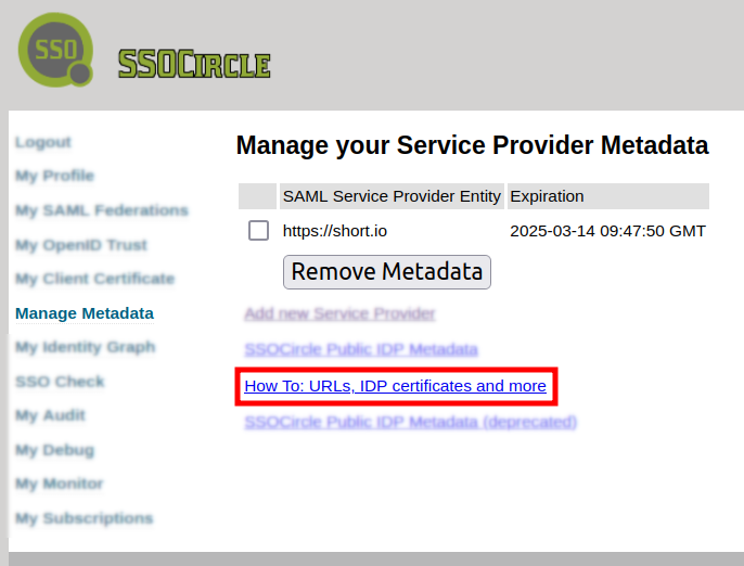 Click on How to: URLs, IDP certificates and more: