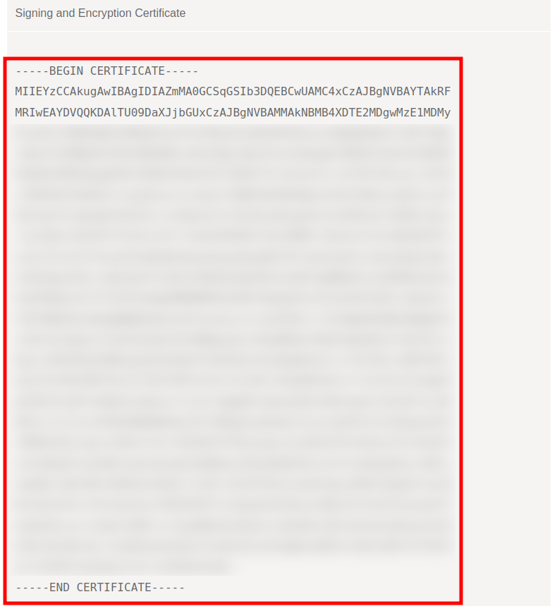 Copy the content of the Signing and Encryption Certificate and save it in a separate text document: