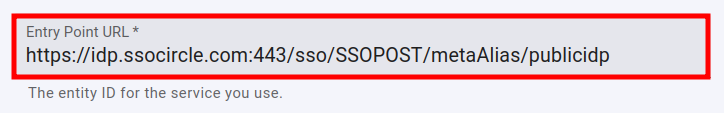 paste the SSO Service HTTP POST value which you copied from the Public IDP Configuration into the Entry point URL field: