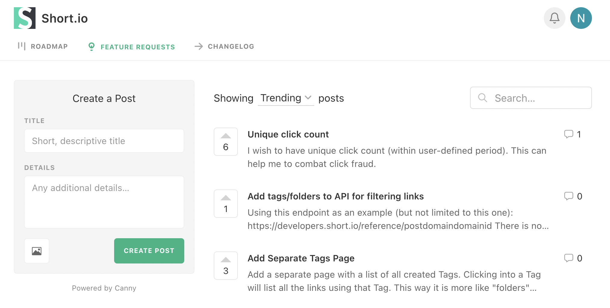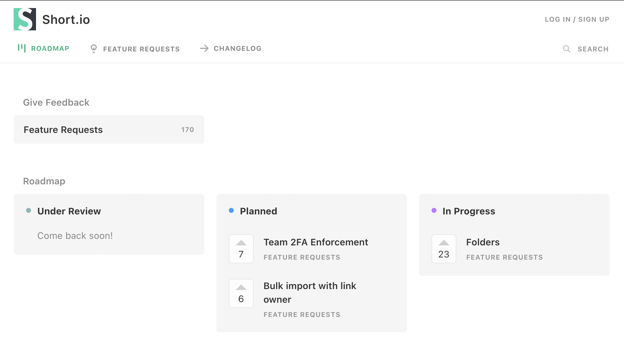 If you're missing a feature on Short.io, make a request and track its implementation. Short.io appreciates every customer, so we want our service to be customer-friendly for everybody.