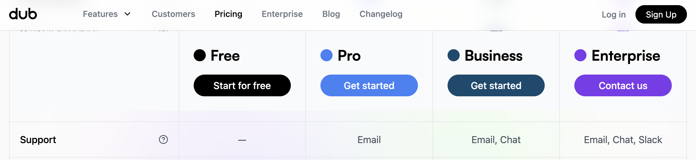Furthermore, Short.io offers a fixed monthly cost, even for our Enterprise Plan. This starkly contrasts with Dub.co, which requires a contact form for its Enterprise Plan. This makes it difficult for high-paying customers to gauge the fairness of their pricing compared to others, as their pricing structure is neither fixed nor public.