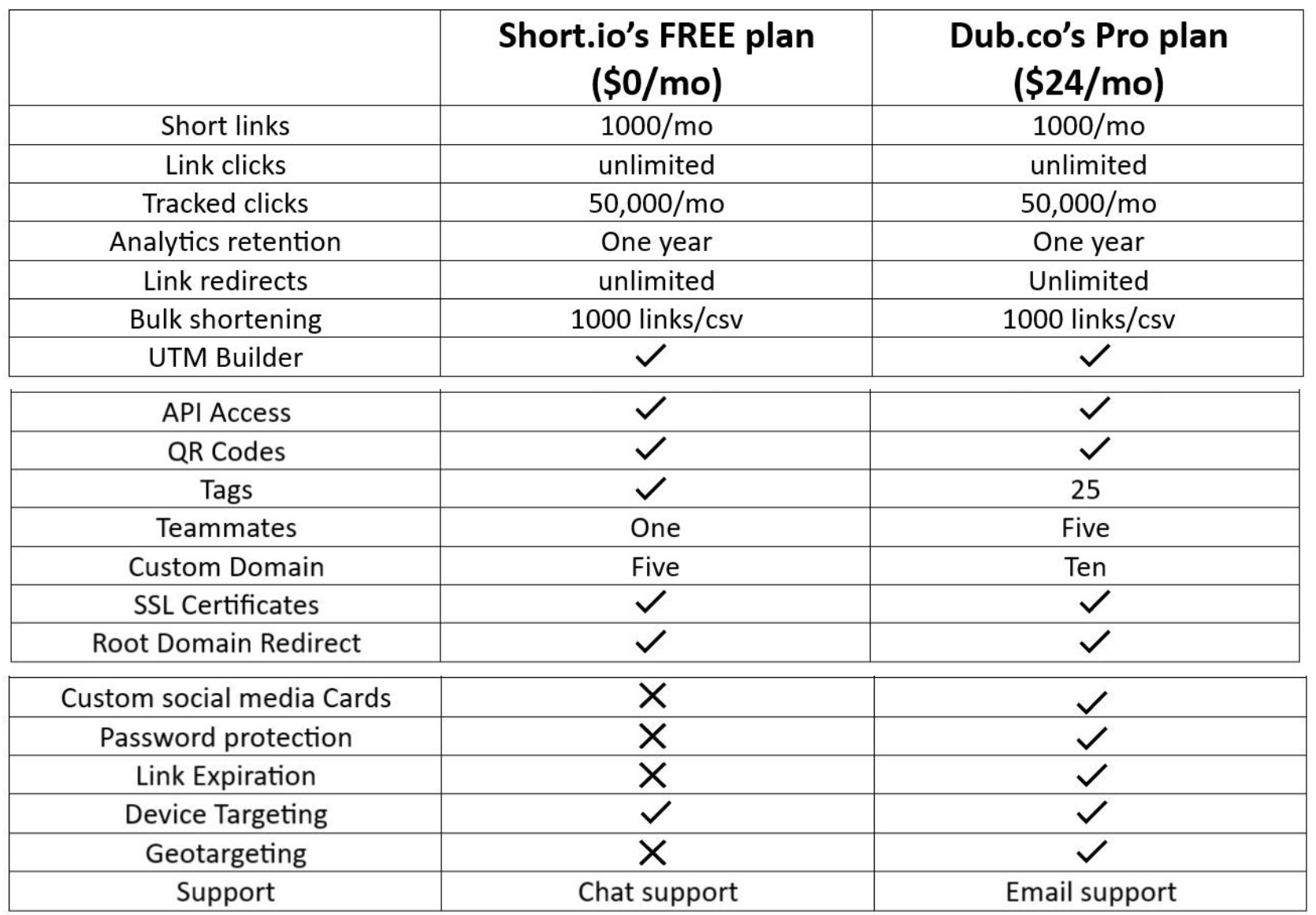 Dub.co claims to have the most generous free plan, but Short.io free plan offers more features, including some from Dub.co’s paid plan. Furthermore, Short.io provides free trials, ensuring a risk-free experience for customers.