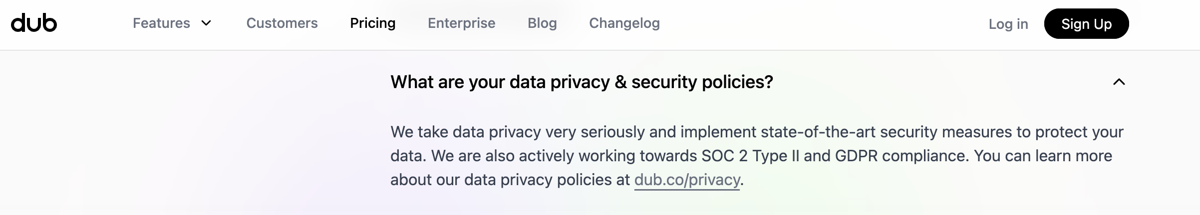 In contrast, Dub.co isn’t currently GDPR, ISO and SOC 2 compliant. While these may not be important to most users, professionals and corporations know how these certifications are crucial for protecting customer data. If your providers do not comply with standards, your data is at risk of being compromised, especially if you’re unsure about their operations.